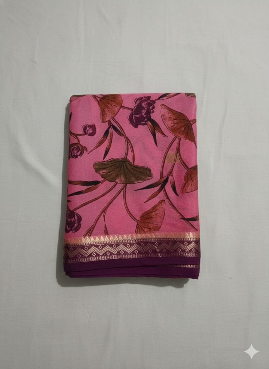 Add a touch of luxury and charm to your ethnic collection with this Premium Semi-Printed Crepe Silk Saree, beautifully adorned with delicate butta work all over and a small zari border that enhances its refined elegance.